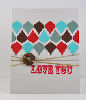 This is the card for your man! The inspration piece is masculine and defintly colors to remenber for more masculine cards. I used my smallest heriloom ornament die from nestabilities to capture the some of the patterning in the inspiration piece.